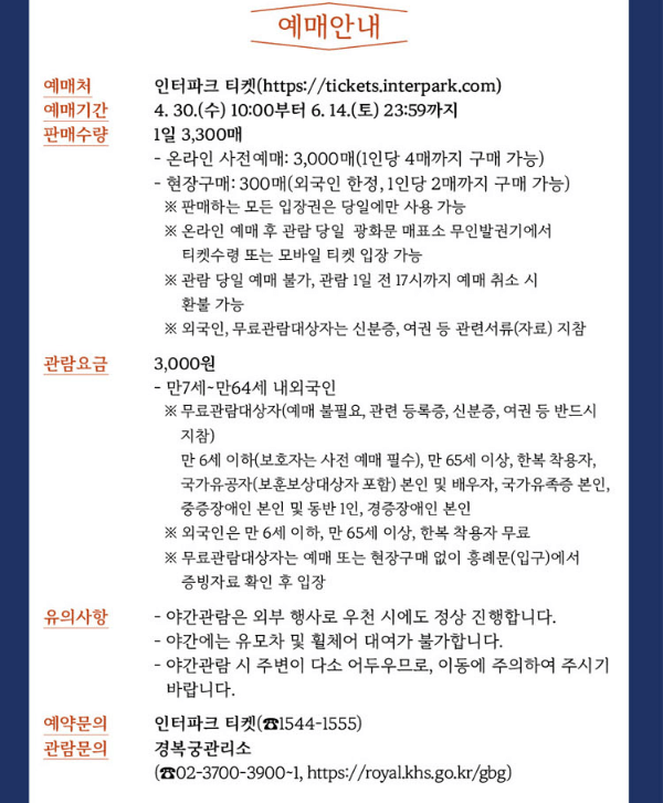 2025 경복궁 야간개장 인터파크 예매(+무료입장방법)