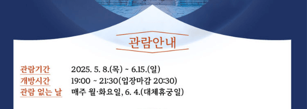 • 관람 시간: 19:00 ~ 21:30 (입장 마감 20:30)